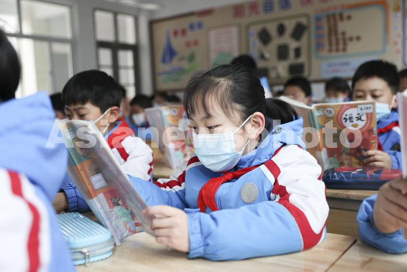 2022年4月6日,在江苏省连云港市赣榆实验小学,学生们在课堂听课。