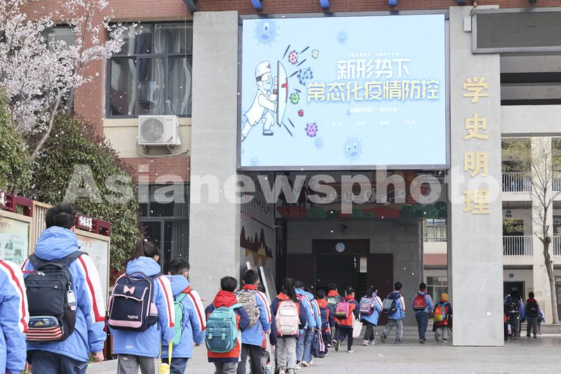 2022年4月6日,在江苏省连云港市赣榆实验小学,学生有序返校复学。