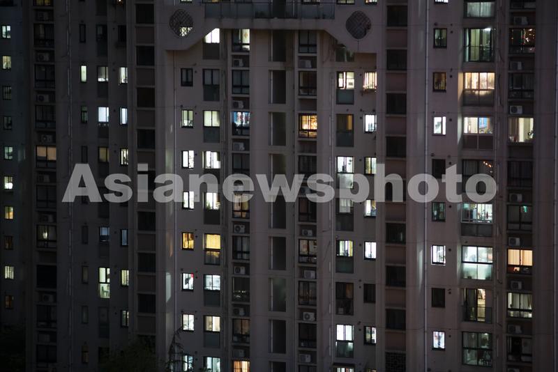 图片说明:2022年4月8日,上海浦西封控第八天,杨浦区周家嘴路附近住宅区的灯光。