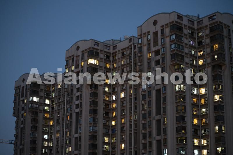 图片说明:2022年4月8日,上海浦西封控第八天,杨浦区周家嘴路附近住宅区的灯光。