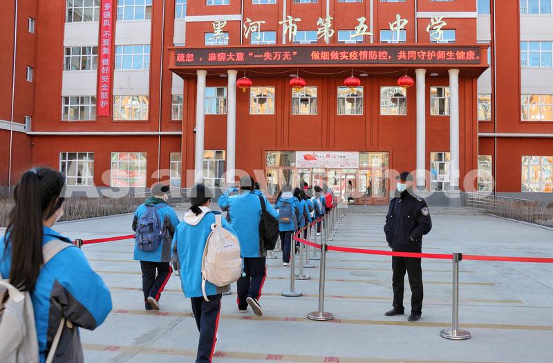 按照黑河市防疫指挥部总体要求,2022年4月15日,黑河市市区初、高中学校按照错时错峰原则有序复学复课,阔别已久的校园重现勃勃生机。