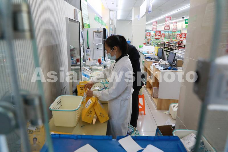 4月17日晚,在上海市黄浦区一家药店,工作人员在打包药品。