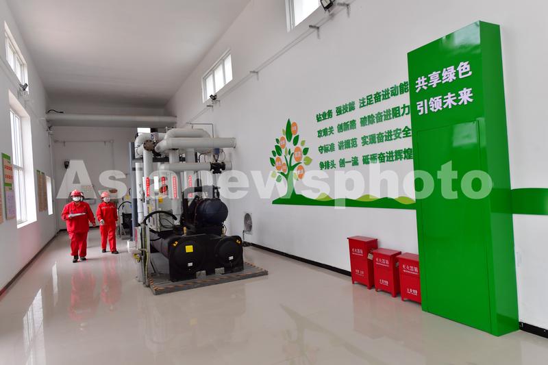 2022年4月18日,河南省濮阳市,技术人员在中石化中原油田濮三联合站现场巡查设备运行情况。