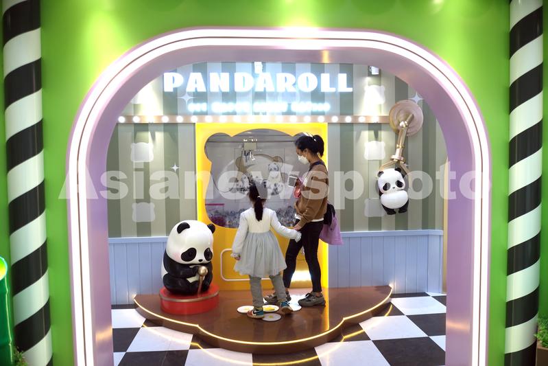 2022年4月25日,辽宁沈阳,妙趣熊猫屋,熊猫滚滚PandaRoll展亮相一商场,吸引市民参观。