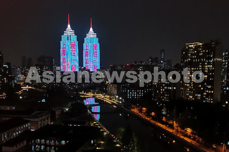 近日,上海新冠病毒疫情防控形势严峻,地标建筑环球港双子楼灯光秀点亮苏州河畔夜景为抗疫加油,“我爱魔都”、“上海加油,爱在一起”、“静候春暖花开”字样代表了市民的心声和渴望春天的美好祝福。