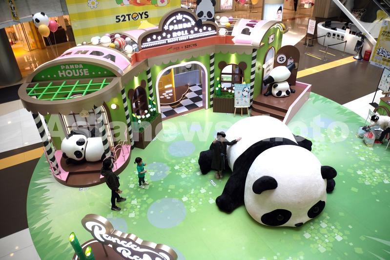 2022年4月25日,辽宁沈阳,妙趣熊猫屋,熊猫滚滚PandaRoll展亮相一商场,吸引市民参观。