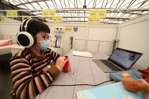 2022年4月9日,中国日报记者探访上海浦东新区新国际博览中心方舱医院W1至W3舱,这里由50家医院组成的湖北援沪医疗队进行管理。