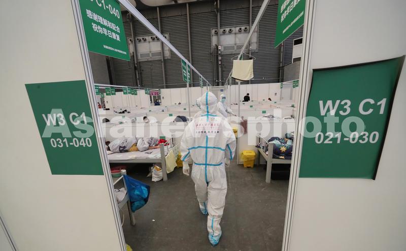 2022年4月9日,中国日报记者探访上海浦东新区新国际博览中心方舱医院W1至W3舱,这里由50家医院组成的湖北援沪医疗队进行管理。