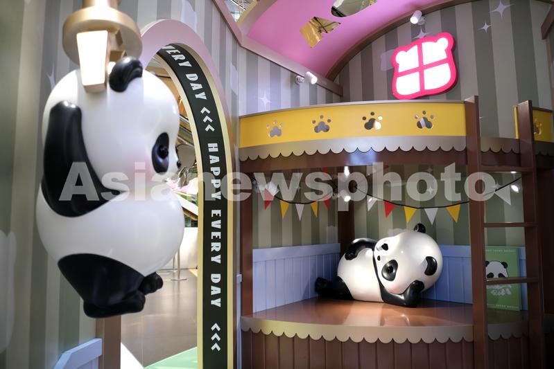 2022年4月25日,辽宁沈阳,妙趣熊猫屋,熊猫滚滚PandaRoll展亮相一商场,吸引市民参观。