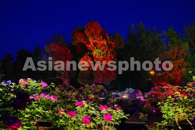 图片说明:2022年4月23日,北京景山公园"夜赏牡丹"景区内游客感受牡丹幻境。