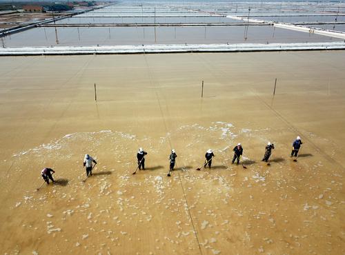 近日,江苏连云港市工投集团日晒制盐公司400余公顷的盐池陆续开始进入春季扒盐的黄金时期,工人们利用晴好天气,加紧进行破碴、清理塑料布、盐堆平整、扒盐设备安装等各项准备,确保“春扒”顺利进行。作为优质淮盐的主产地,连云港市积极推行“传统海盐+新式工艺”生产模式,科学调配海矿卤水比例,完善钙液除硫工艺,加大盐产品研发力度,实施高端化、精品化、差异化发展战略,推进原盐品牌建设,着力打造优质食用原料盐生产基地。