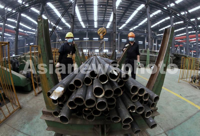 2022年5月13日,江苏省张家港市弘强制管有限公司生产车间里,工人在赶制一批外贸订单。