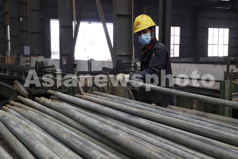 2022年5月13日,江苏省张家港市弘强制管有限公司生产车间里,工人在赶制一批外贸订单。该公司严格落实疫情防控措施,开足马力开展钢管订单生产,满足国内外市场需求。按照“疫情要防住、经济要稳住、发展要安全”要求,张家港市近期出台了28条恵企政策,全力支持市场主体发展,助力企业纾困解难。