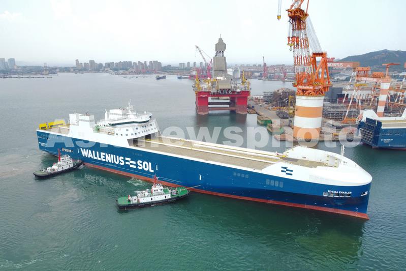 2022年5月16日,双燃料冰级滚装船“BOTNIA ENABLER”轮驶离中集来福士山东烟台建造基地。
