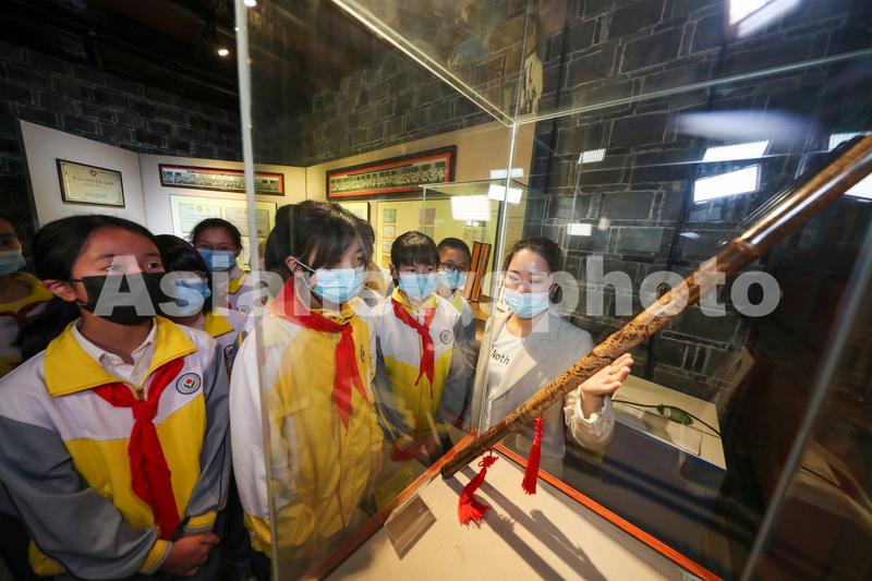 图片说明:2022年5月16日,学生在贵州省铜仁市玉屏侗族自治县箫笛博物馆参观。