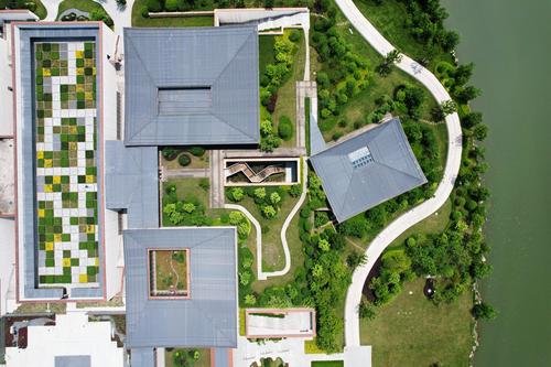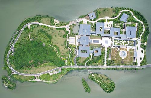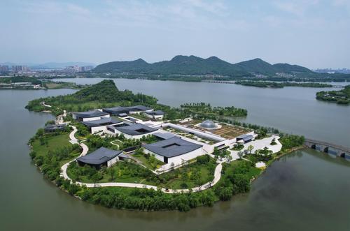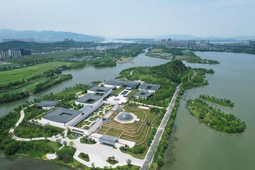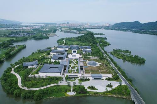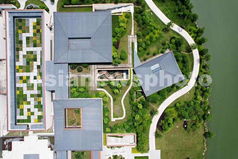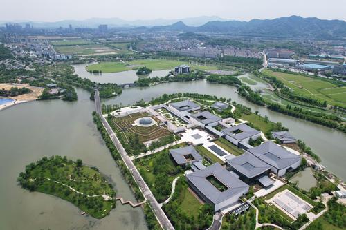 图片说明:2022年5月17日,从空中俯瞰位于杭州市萧山区的世界旅游博物馆。