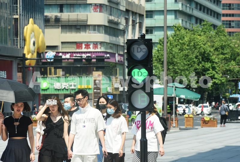 2022年5月17日,随着一年一度的“520”网络情人节即将到来,“爱心”红绿灯和“爱心”斑马线同时出现在杭州西湖边上的湖滨步行街上 ,红绿灯变换着的“爱心”图形和斑马线上粉色的爱心图案,吸引了不少市民游客特别是年轻人前来拍照打卡。