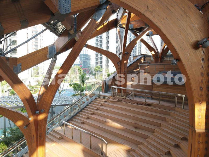 2022年5月17日拍摄的南京江北新区人才公寓一栋能发电的“木屋”。这栋“木屋”是江北新区人才公寓(1号地块)项目社区服务中心,屋面上结合屋顶木屋架布置太阳能板,采用“木结构+光伏发电系统”,实现整栋建筑零能耗及零碳排放,是中国第一栋装配式木结构零碳建筑。