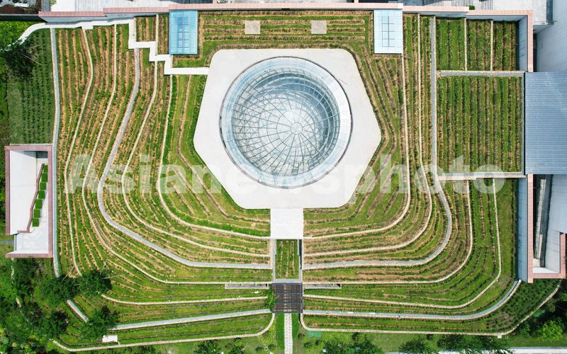 图片说明:2022年5月17日,从空中俯瞰位于杭州市萧山区的世界旅游博物馆。