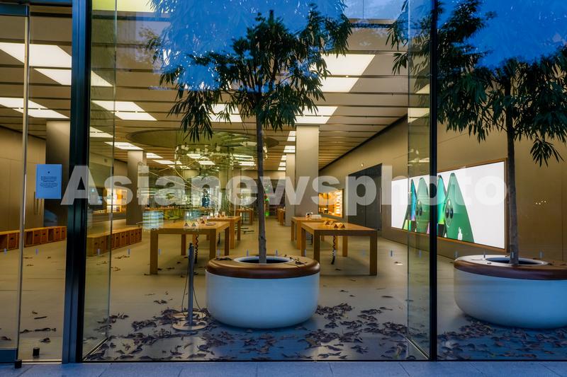 5月18日,上海市淮海中路环贸广场苹果商店内掉落在地上的落叶。