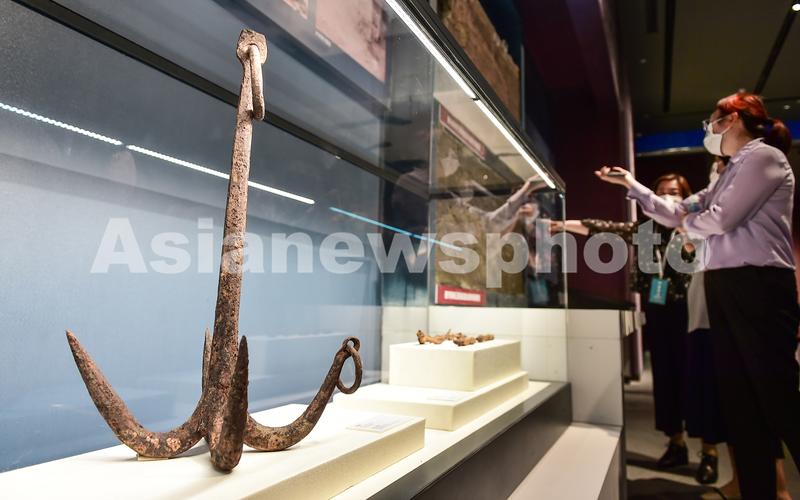 图片说明:2022年5月18日,市民在位于河南洛阳市的隋唐大运河文化博物馆内,参观各类精品文物。