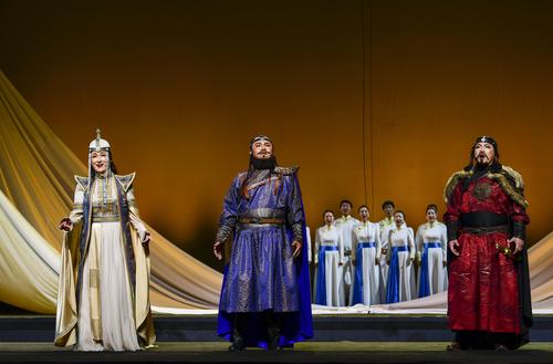2022年5月19日,演员在歌剧《江格尔的雄狮》中表演。