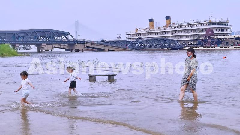 湖北武汉: 长江江水漫上汉口江滩一级亲水平台 查看组图