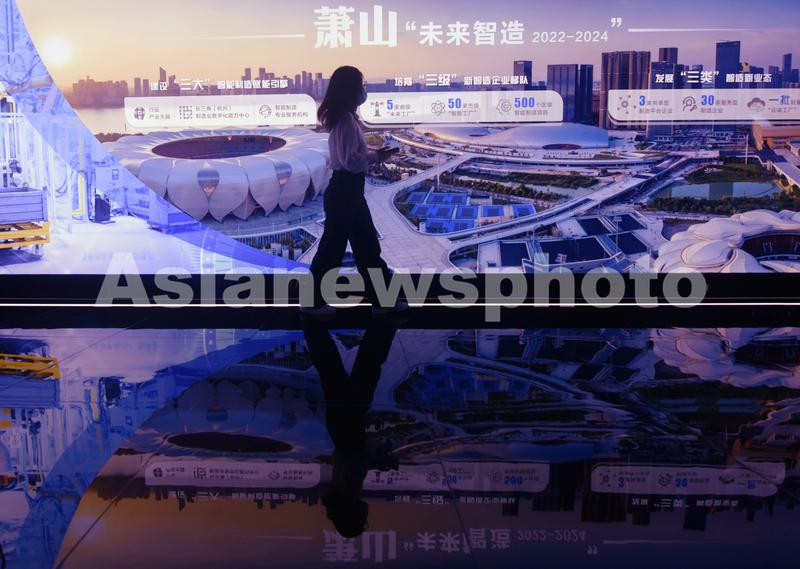 图片说明:2022年5月23日,市民在参观位于杭州市萧山区的长三角(杭州)制造业数字化能力中心。