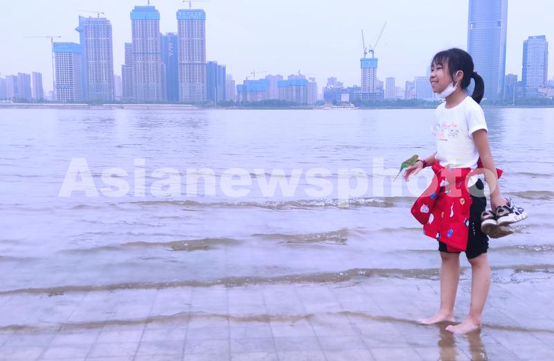 湖北武汉: 长江江水漫上汉口江滩一级亲水平台 查看组图