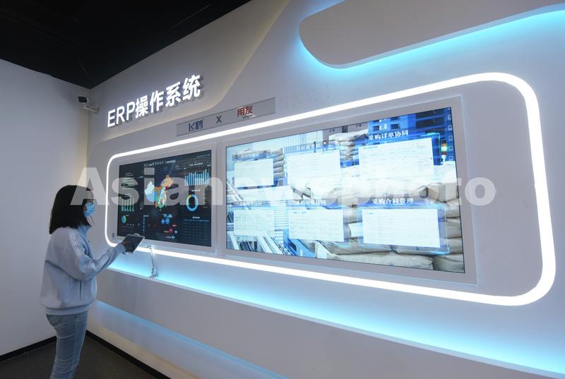 图片说明:2022年5月23日,市民在位于杭州市萧山区的长三角(杭州)制造业数字化能力中心体验ERP(企业资源计划)操作系统。