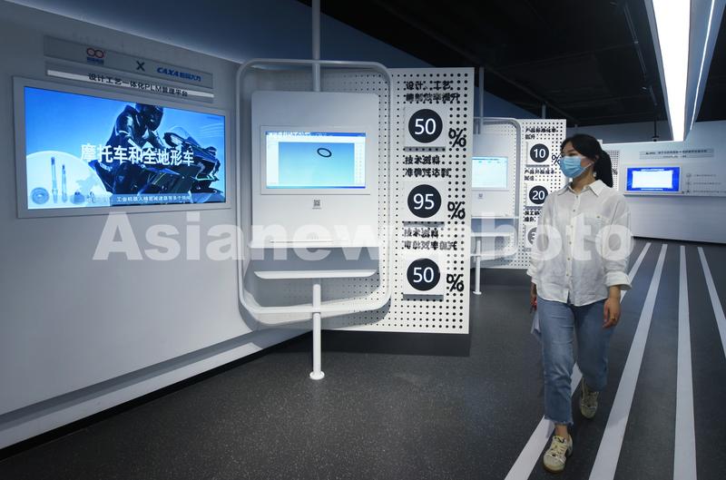 图片说明:2022年5月23日,市民在位于杭州市萧山区的长三角(杭州)制造业数字化能力中心参观工业软件(app)创新中心。