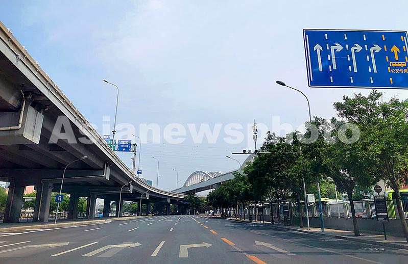 图片说明:2022年05月23日,在北京阜石路石景山区金顶街段,因受石景山全区实行居家办公规定,道路车流、路上行人明显减少。