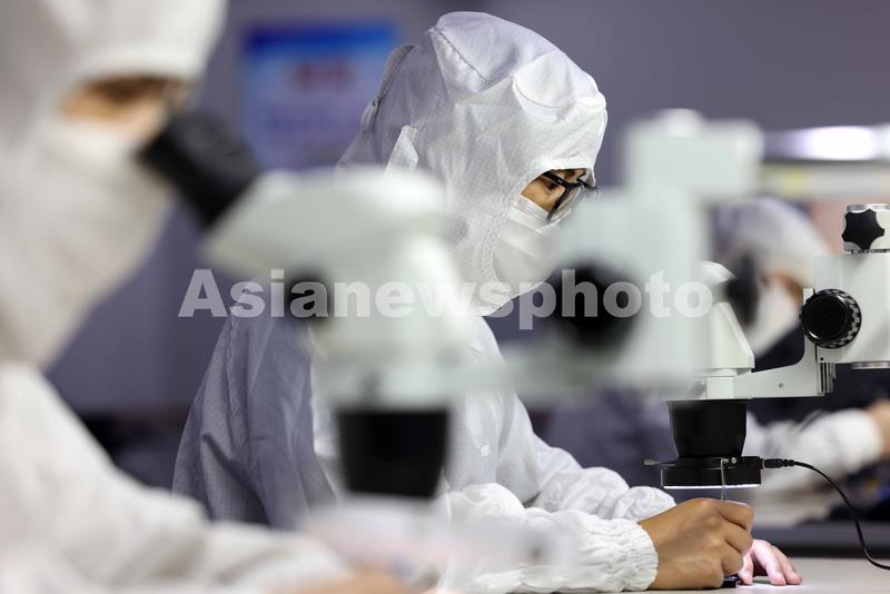 图片说明:2022年5月26日,在安徽省合肥高新技术开发区的合肥芯谷微电子有限公司,员工在进行芯片分拣作业。