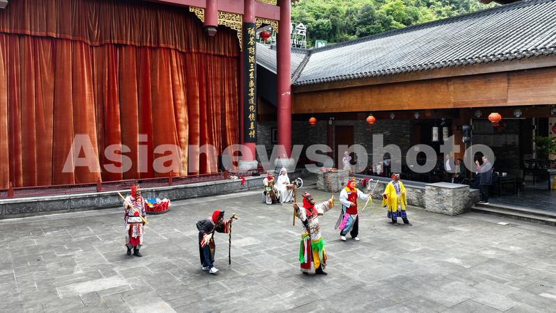图片说明:2022年5月24日,民间艺人在贵州省遵义市道真仡佬族苗族自治县“中国傩城”景区表演仡佬族傩戏。