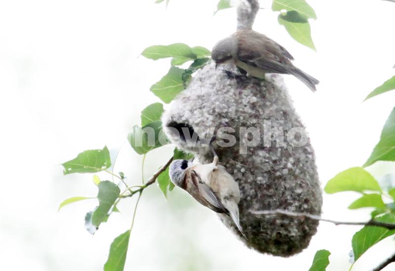 2022年5月29日,沈阳沈北新区蒲河路一个杨树上中华攀雀筑巢忙。