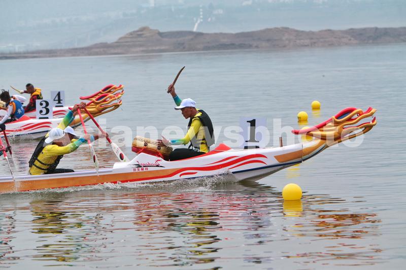 图片说明:2022年5月27日,湖北秭归,湖北省第十六届运动会群众体育龙舟比赛混合组10人奥运龙舟200米直道赛比赛中。