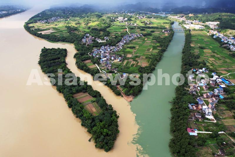 图片说明:2022年5月26日在广西柳州市融安县拍摄的“泾渭分明”景观。