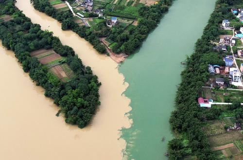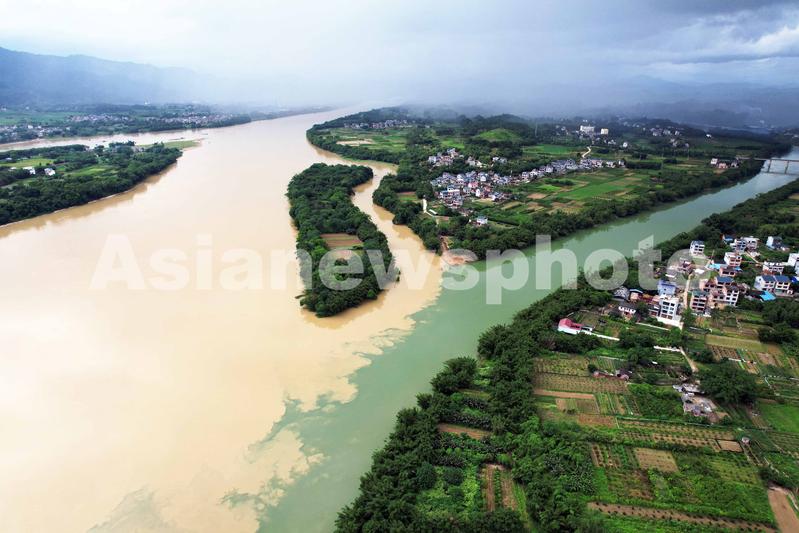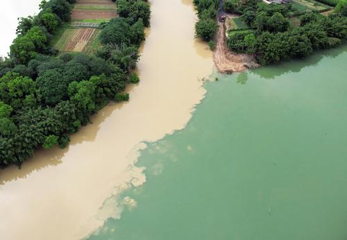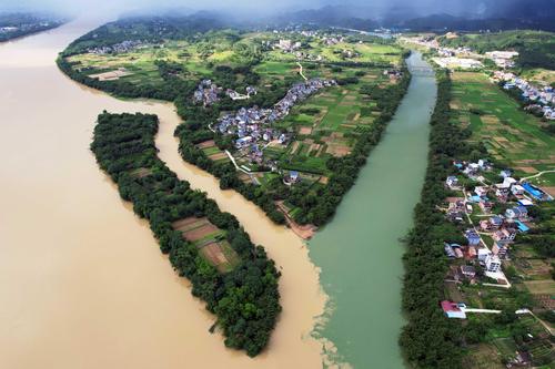 广西融安:雨后融江现“泾渭分明”景观 查看组图