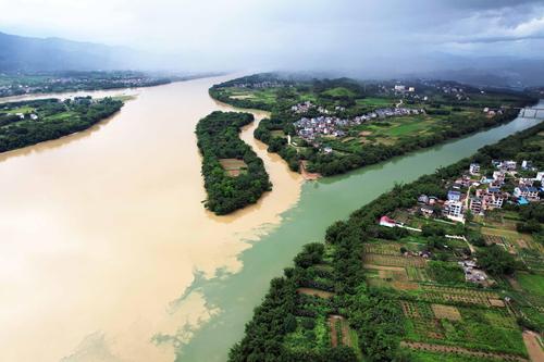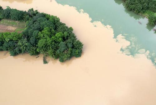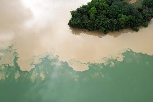 图片说明:2022年5月26日在广西柳州市融安县拍摄的“泾渭分明”景观。