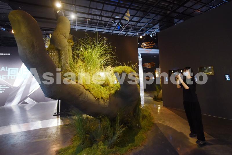 图片说明:2022年6月1日,观众在浙江美术馆观看中国美术学院2022年毕业展上的艺术装置《乐土》。
