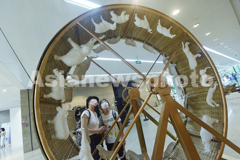 图片说明:2022年6月1日,观众在浙江美术馆观看中国美术学院2022年毕业展上的雕塑作品《1844》。