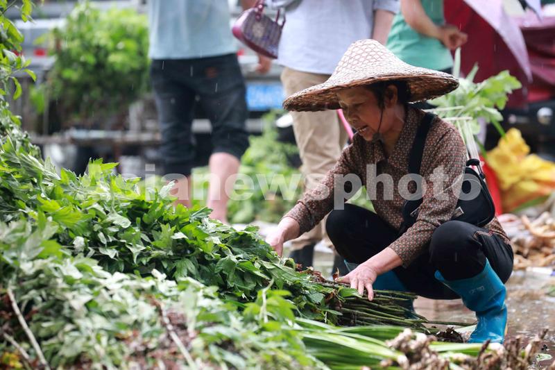 图片说明:6月3日,在广西柳州市融安县“端午药市”,一名村民在整理中草药。