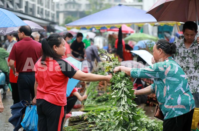 图片说明:6月3日,在广西柳州市融安县“端午药市”,市民在购买中草药。