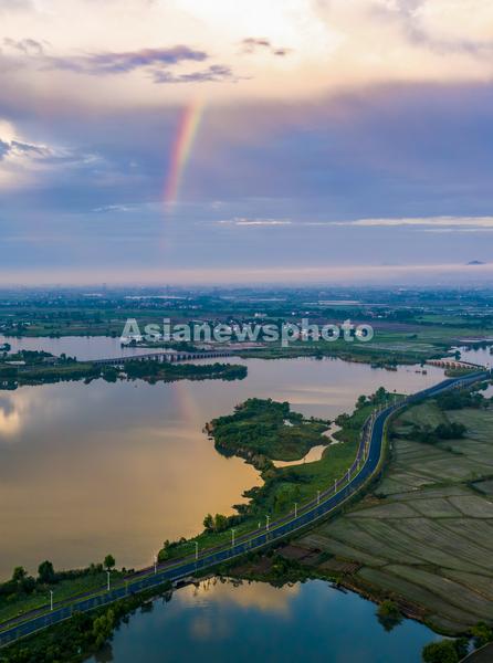2022年6月2日,安徽省南陵县许镇镇奎湖省级湿地公园在初夏晨光的照射下宛如一幅美丽的生态画卷,美不胜收。