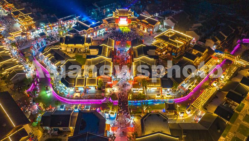 图片说明:2022年6月3日,湖北省襄阳市,樊城区关圣古镇旅游景区流光溢彩,吸引了众多市民前来游玩。