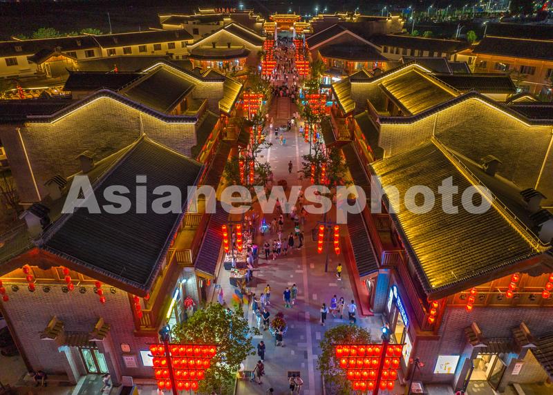 图片说明:2022年6月3日,湖北省襄阳市,樊城区关圣古镇旅游景区流光溢彩,吸引了众多市民前来游玩。