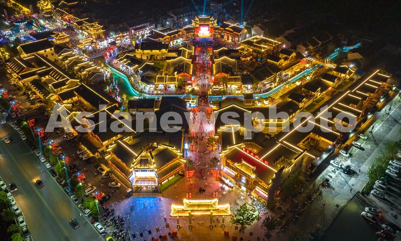 图片说明:2022年6月3日,湖北省襄阳市,樊城区关圣古镇旅游景区流光溢彩,吸引了众多市民前来游玩。
