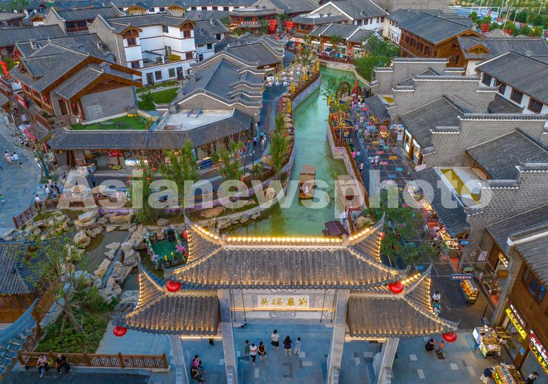图片说明:2022年6月3日,湖北省襄阳市,樊城区关圣古镇旅游景区吸引了众多市民前来游玩。