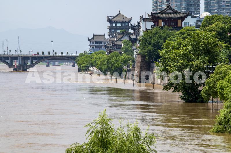 图片说明:2022年6月6日下午,浙江省金华市兰江水域,钱塘江2022年1号洪水正安全过境。