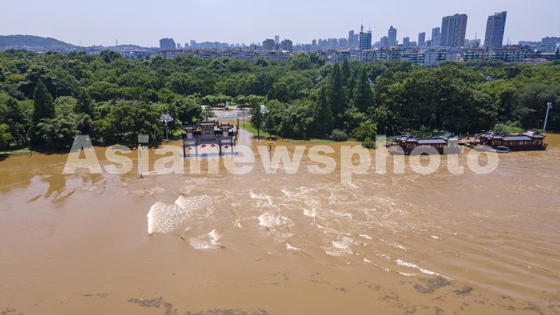 图片说明:2022年6月6日下午,航拍浙江省金华市兰江水域,钱塘江2022年1号洪水正安全过境(无人机照片)。